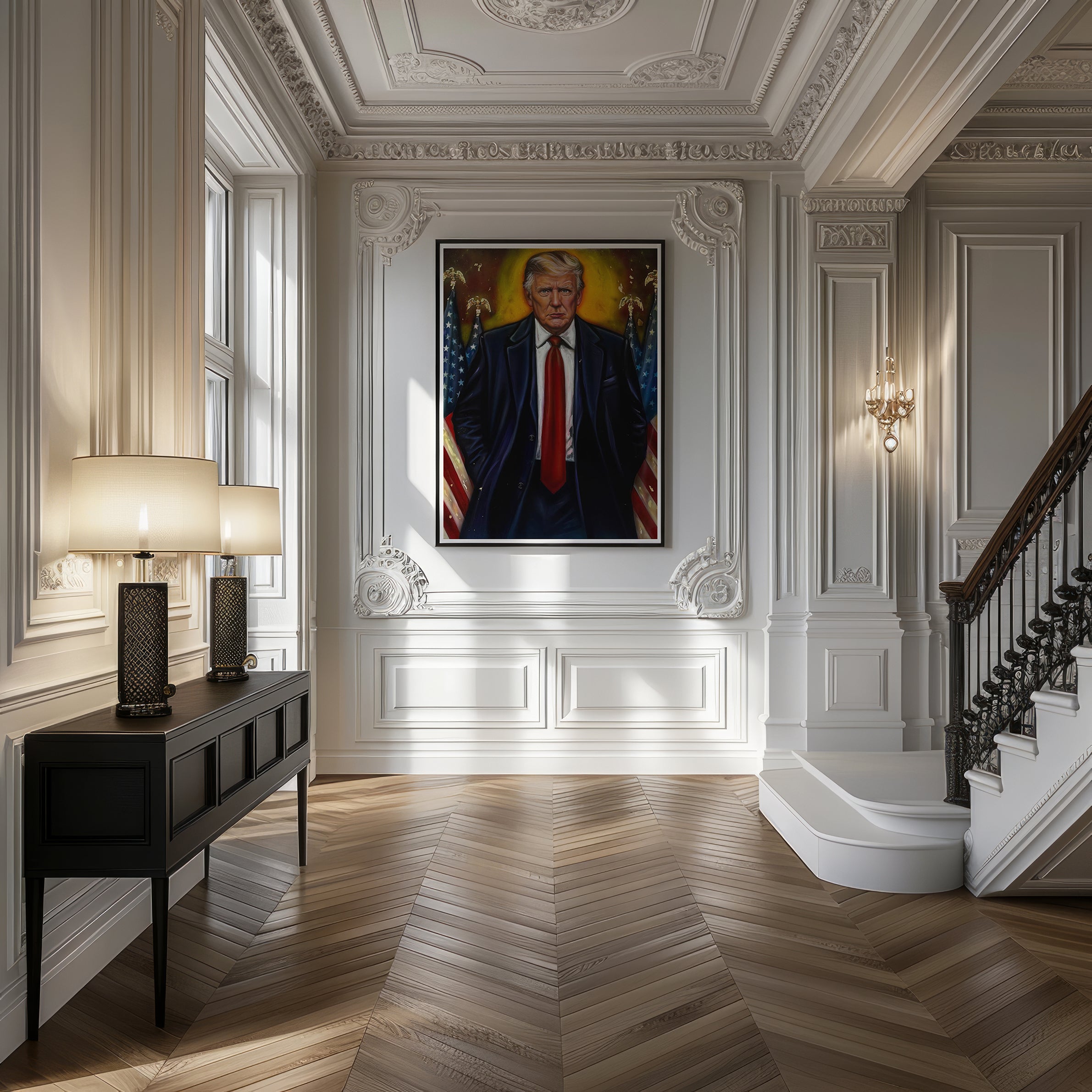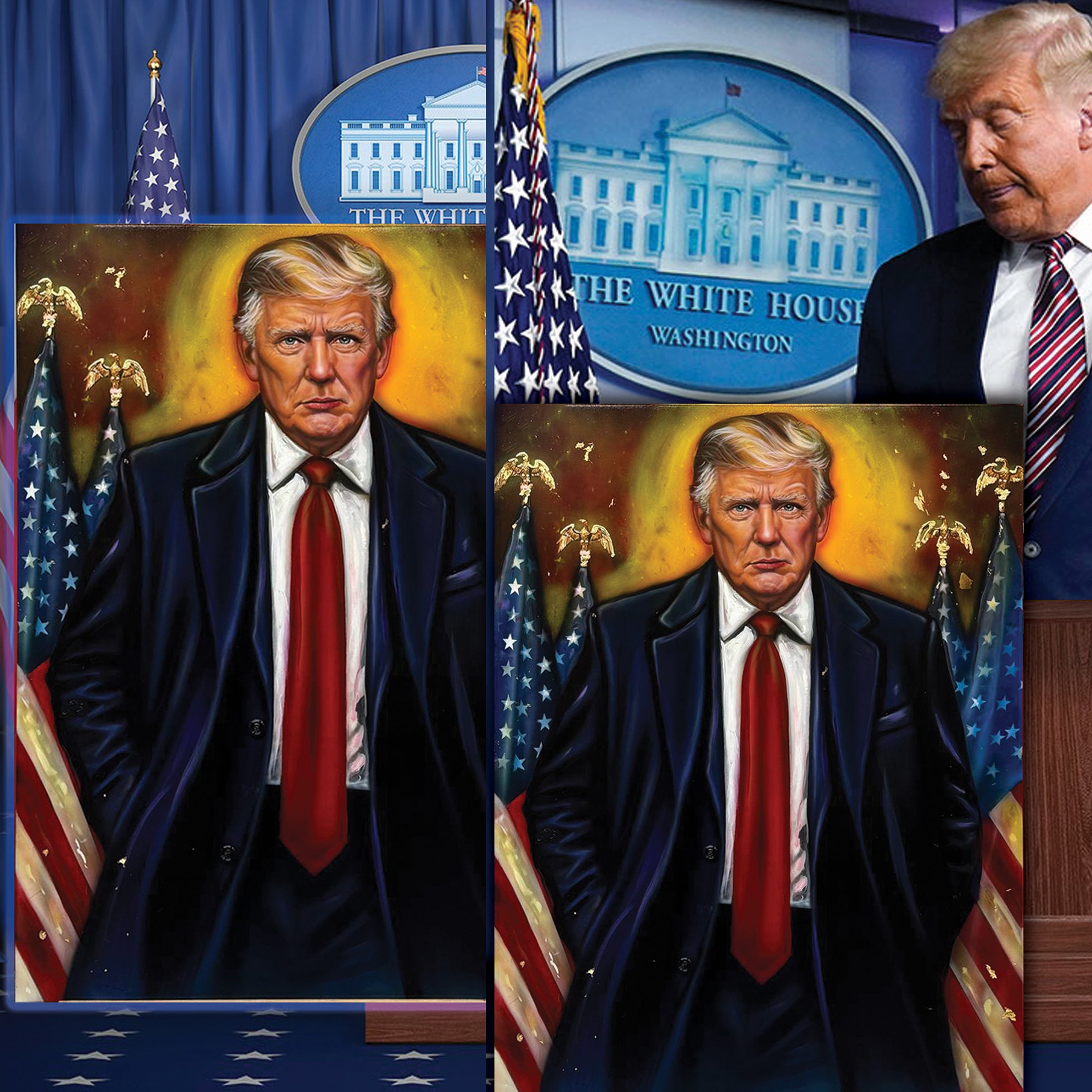 Leadership, in every era, is a performance of composure — a balancing act between who a leader truly is and what the world needs them to appear to be. For decades, Trump has embodied that duality — business and politics, image and impact, confidence and controversy. Whether loved or despised, his presence is impossible to ignore. And that magnetic pull — that force of persona — is what I wanted to translate to canvas.